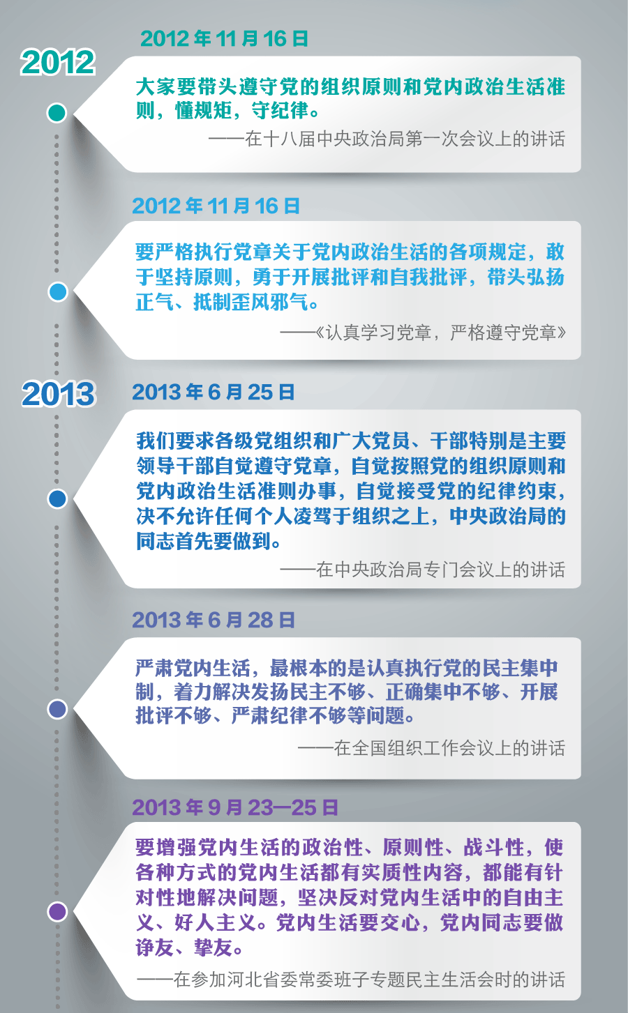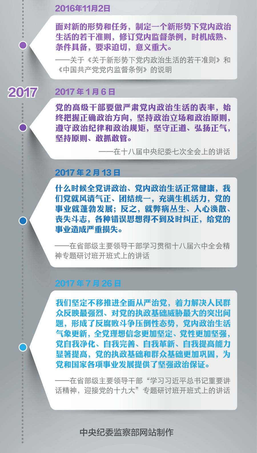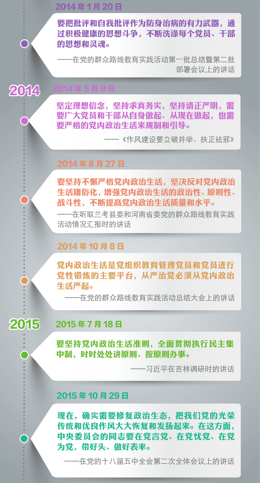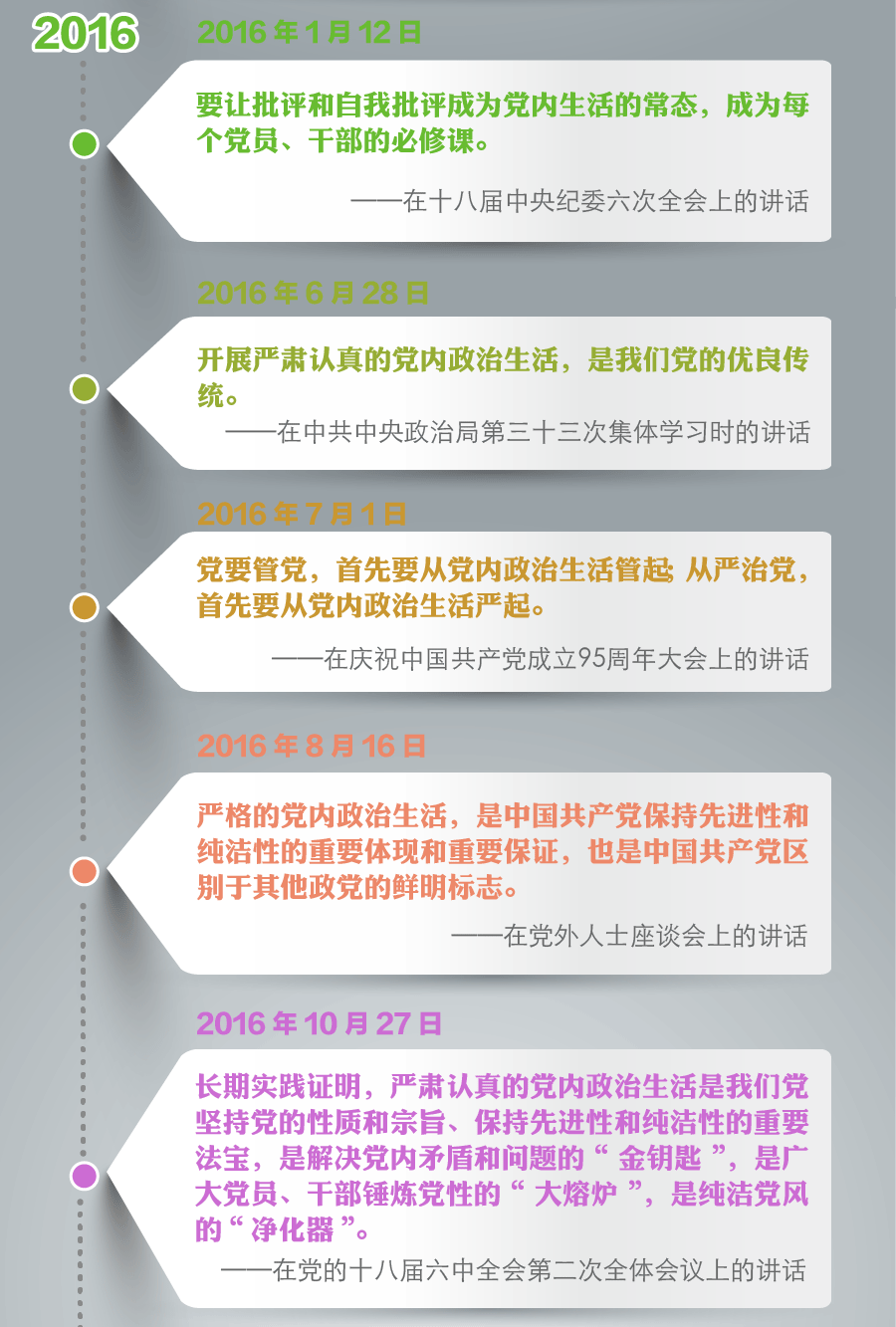 5年来,习近平总书记在多次重要讲话中,立足党的优良传统和新的历史方位,对严肃党内政治生活提出更高要求,体现出深沉的使命忧患感、强烈的历史责任感。